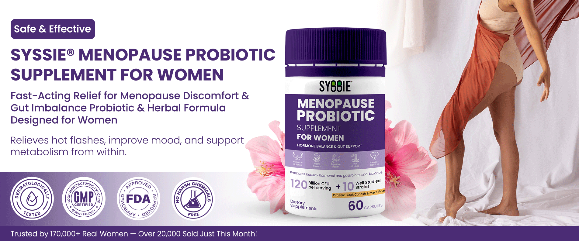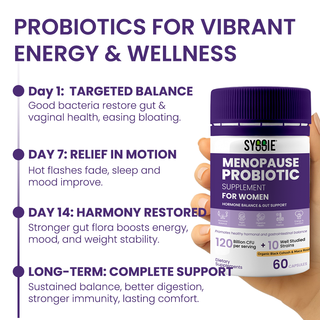 Syssie® Menopause Probiotics works from the inside out by supporting both hormonal balance and gut health, giving your body what it needs to thrive during menopause and beyond.